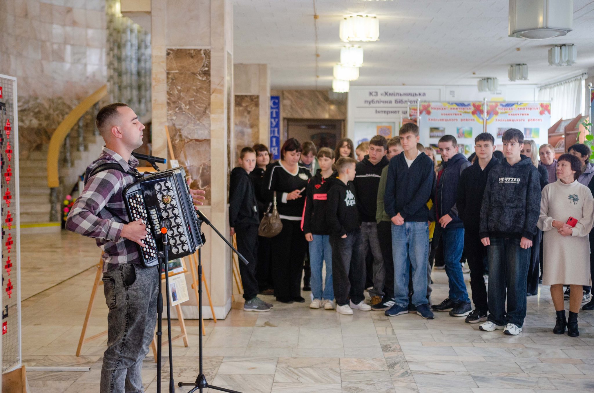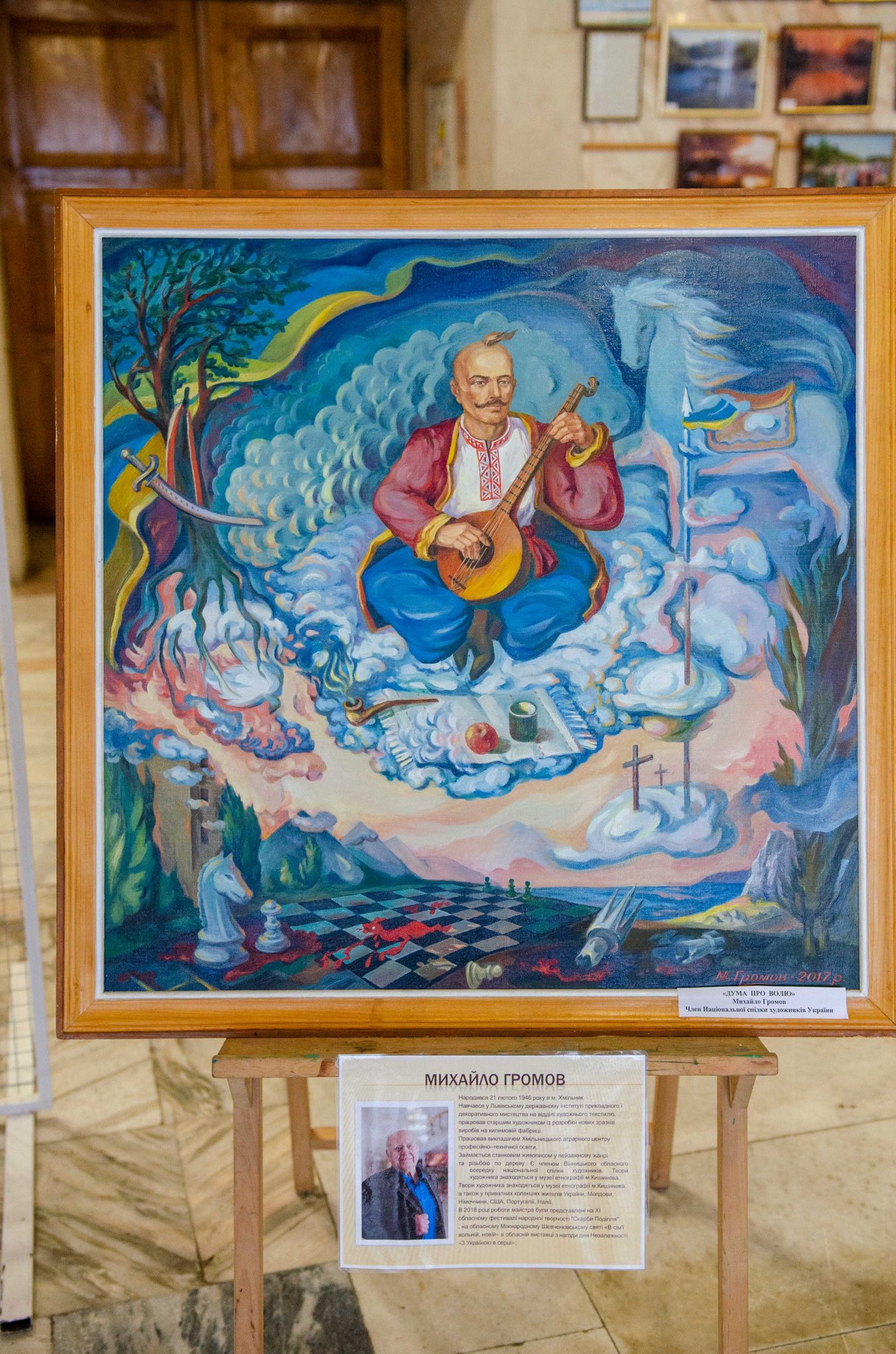 Приємною музичною окрасою події стала інструментальна композиція на баяні, яку подарував художникам керівник інструментальної студії Будинку культури - Богдан Заболотний.