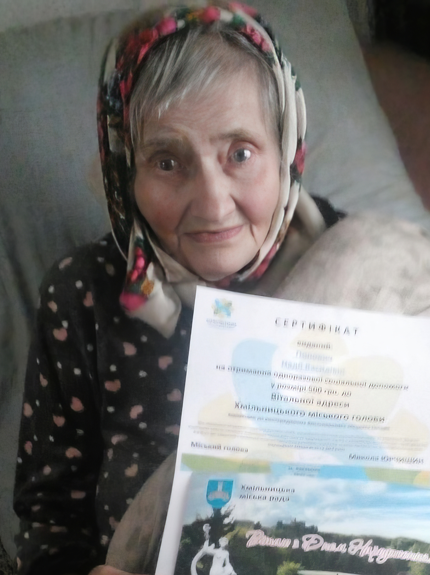 За дорученням міського голови Миколи Юрчишина староста Кривошиївського старостинського округу привітав іменинницю та вручив її вітальну листівку, сертифікат на отримання одноразової соціальної допомоги і солодкий подарунок зі словами безмежної вдячності та поваги за працю і внесок у добробут Хмільницької громади.