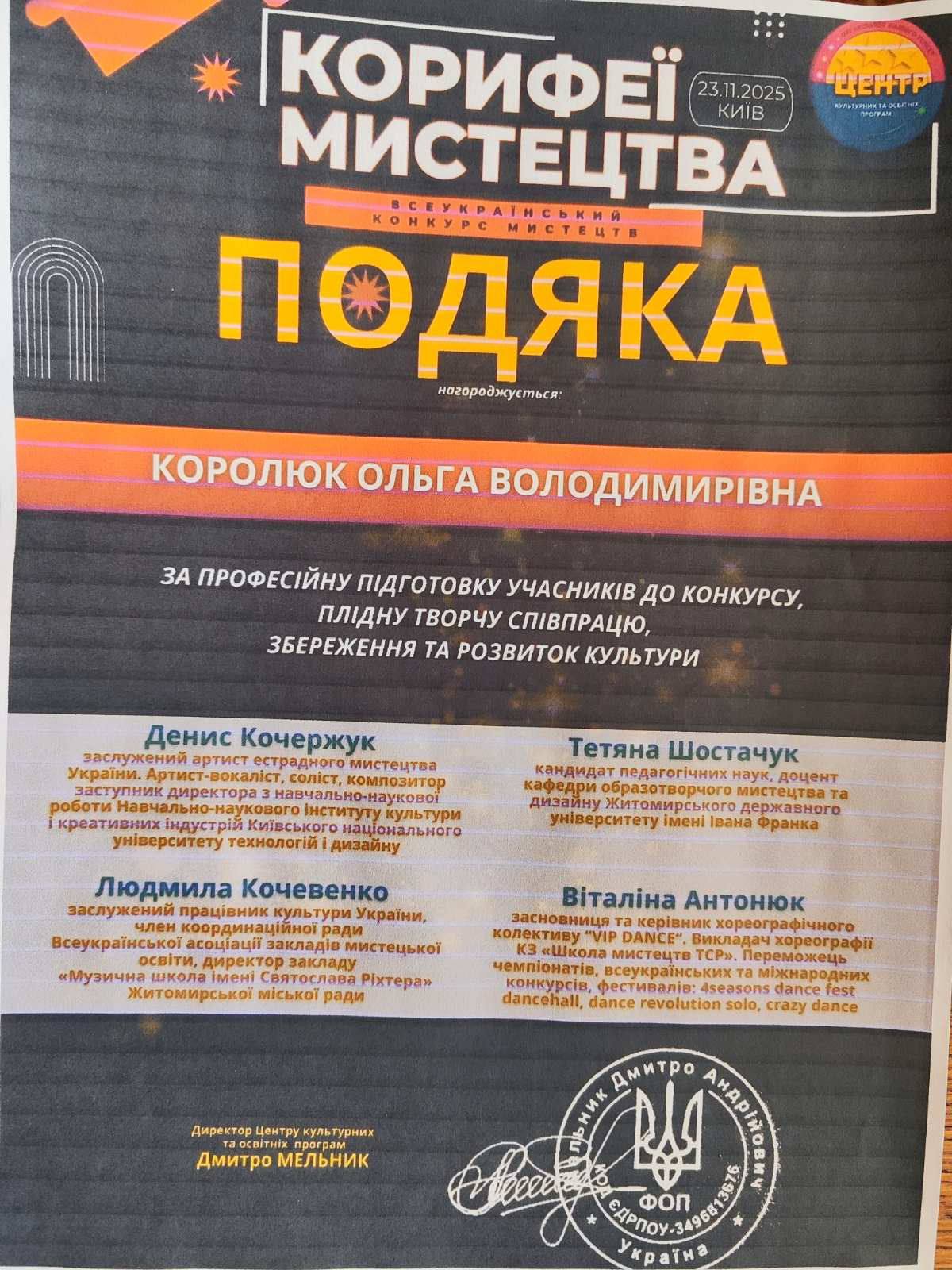 Високий рівень виконання, щирість та емоційна наповненість виступу були гідно відзначені професійним журі.