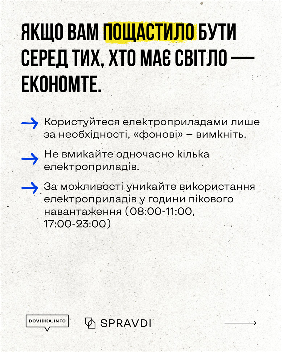 Центр стратегічних комунікацій та інформаційної безпеки в межах проєкту Dovidka.Info оновив матеріали щодо адаптації побуту до можливих обмежень в енергосистемі.