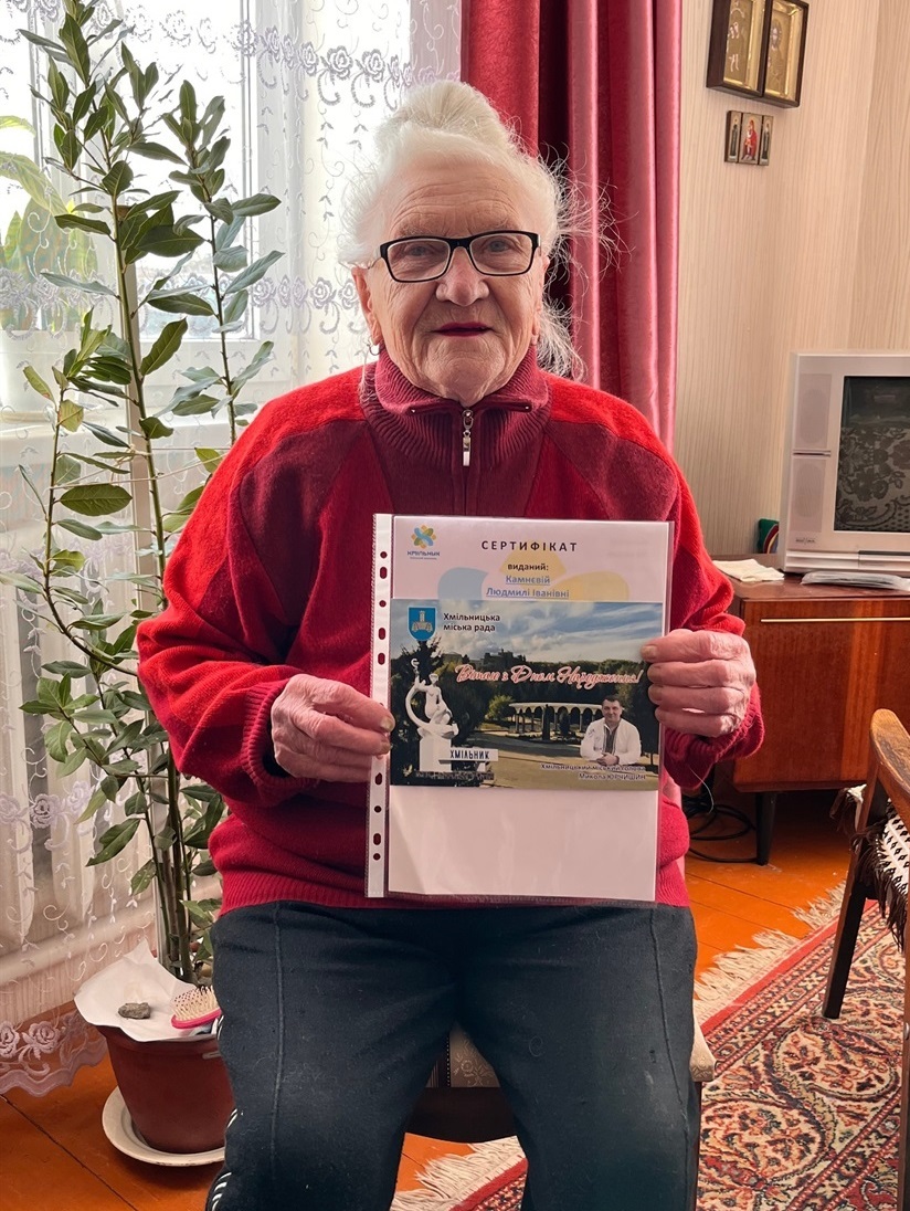 За дорученням міського голови Миколи Юрчишина працівники міської ради та староста Широкогребельського старостинського округу, управління праці та соціального захисту населення привітали іменинників, вручили їм вітальні листівки, сертифікати на отримання одноразової соціальної допомоги та солодкі подарунки — зі словами щирої вдячності й поваги за багаторічну працю та вагомий внесок у добробут Хмільницької громади.