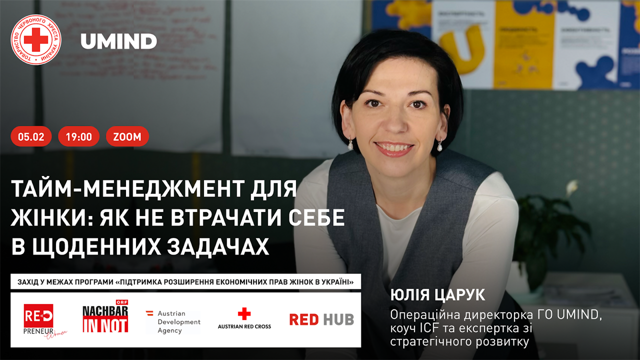 * Захід проводять у межах програми «Підтримка розширення економічних прав жінок в Україні», що реалізує Український Червоний Хрест у партнерстві з Австрійським Червоним Хрестом за підтримки NACHBAR IN NOT та Austrian Development Agency, за організаційної й технічної підтримки громадської організації UMIND.