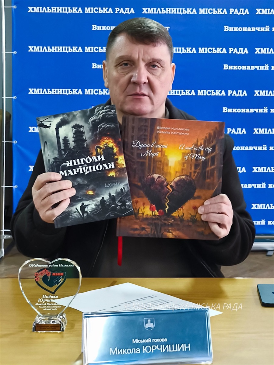 6 лютого 2026 року міський голова Микола Юрчишин у Хмільницькій міській раді зустрівся Вікторією Колмиковою - мамою загиблого воїна-азовця Романа Колмикова на псевдо «Вахр», очільницею ГО «Об'єднання Родин «Незламні», яка разом із матерями полеглих захисників України, журналістами та волонтерами Вінниччини, які завітали до Хмільника, щоб презентувати книги «Янголи Маріуполя» та «Душа в місті Марії», - повідомляє відділ інформаційної діяльності та комунікацій із громадськістю міської ради.