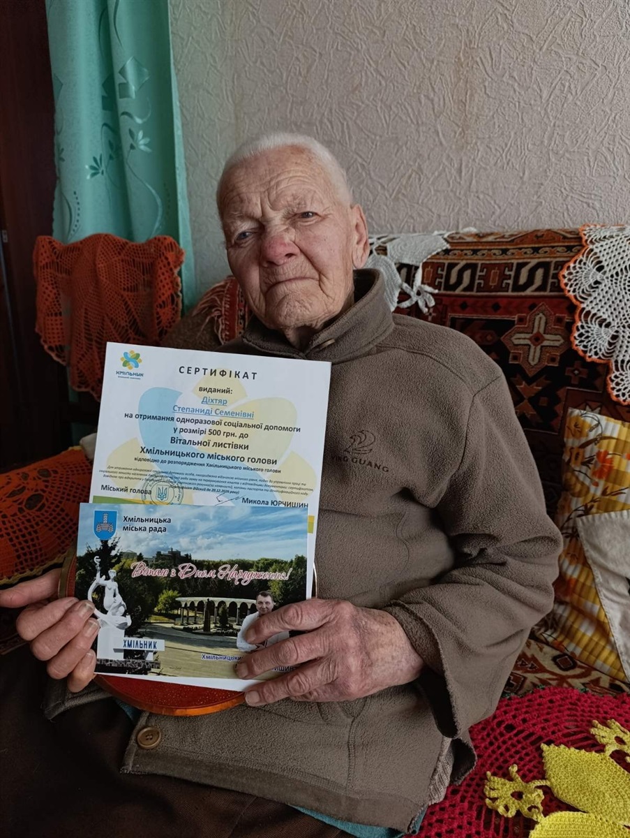 За дорученням міського голови Миколи Юрчишина працівники міської ради, староста Широкогребельського старостинського округу, працівники управління праці та соціального захисту населення Хмільницької міської ради привітали іменинників, вручили їм вітальні листівки, сертифікати на отримання одноразової допомоги та солодкі подарунки — зі словами вдячності й поваги за багаторічну працю та вагомий внесок у добробут Хмільницької громади.