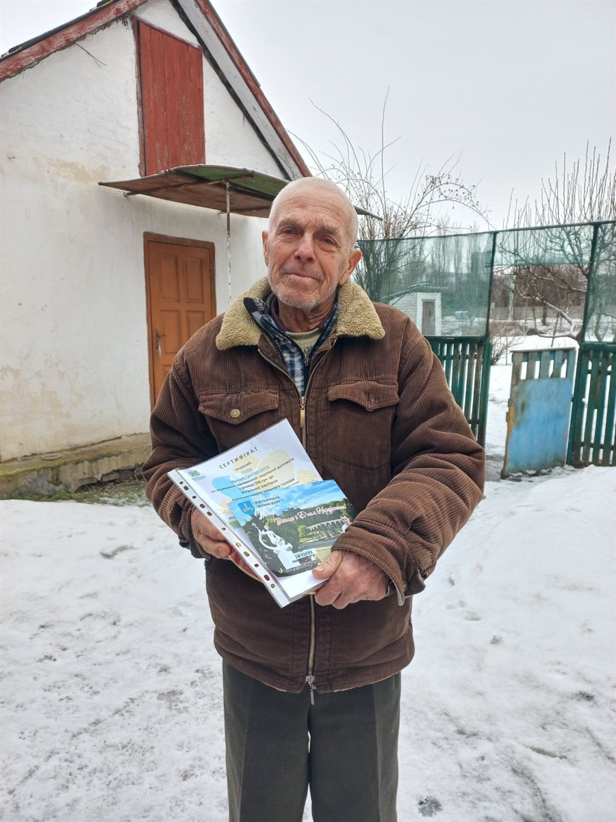 За дорученням міського голови Миколи Юрчишина працівники Управління праці та соціального захисту населення Хмільницької міської ради, старости Порицького та Соколівського старостинських округів Хмільницької територіальної громади вручили їм вітальні листівки, сертифікати на отримання одноразової допомоги та солодкі подарунки — зі словами вдячності й поваги за багаторічну працю та вагомий внесок у добробут Хмільницької громади.
