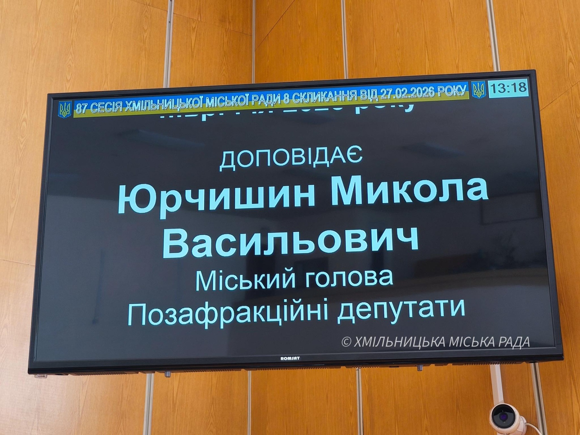 27 лютого 2026 року під головуванням міського голови Миколи Юрчишина відбулася позачергова 87 сесія Хмільницької міської ради 8 скликання. У пленарному засіданні взяв участь 21 депутат. Розглянуто 107 питань порядку денного.