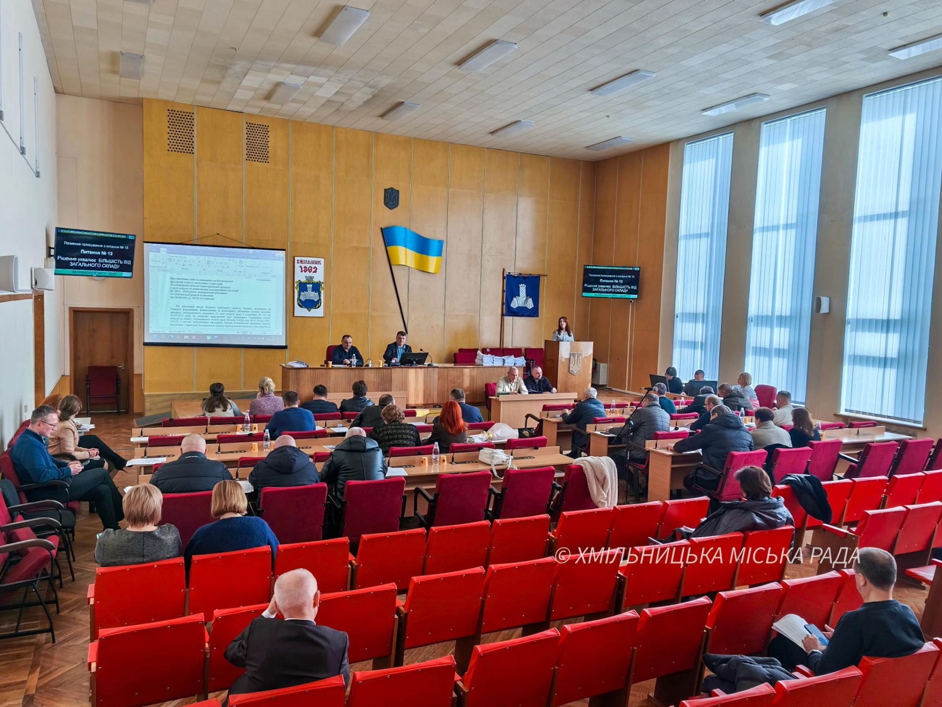 Депутати взяли до відома звіт Хмільницького міського голови про роботу за друге півріччя 2025 року. У звіті Микола Юрчишин зосередився на основних напрямках і результатах роботи його як міського голови, Хмільницької міської ради та її виконавчих органів з урахуванням серйозних викликів для громади в умовах повномасштабної війни. Безумовним пріоритетом залишалися підтримка Збройних Сил України, реалізація ветеранської політики, робота з родинами загиблих і зниклих безвісти. Ключовими напрямами традиційно були відповідальне виконання бюджету громади, соціальний захист населення, зокрема реалізація соціальних програм для вразливих категорій мешканців, збереження здоров’я мешканців і доступність медичних послуг. У сфері освіти пріоритетом залишалися безпека освітнього процесу та впровадження енергозберігаючих заходів у закладах освіти.